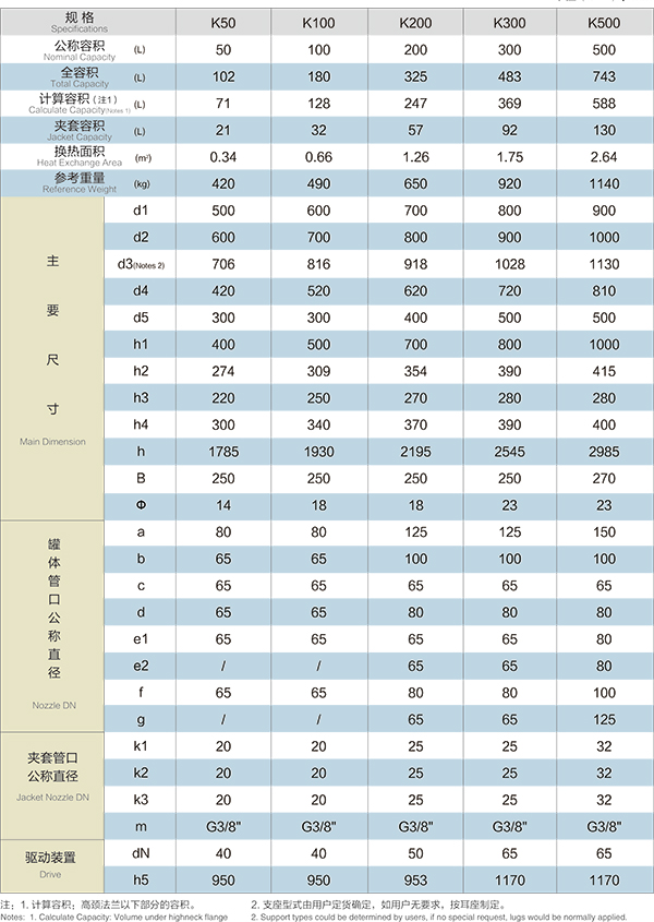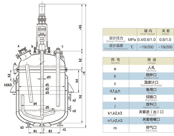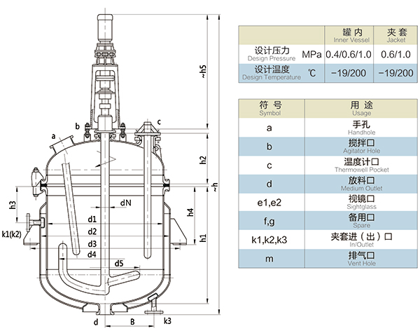 【K型搪玻璃反應器的技術(shù)參數(shù)】: