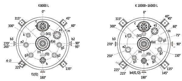 K8000L-K16000L開式搪玻璃反應釜(開式搪瓷反應釜)設計圖紙及參數(shù)如下所示: