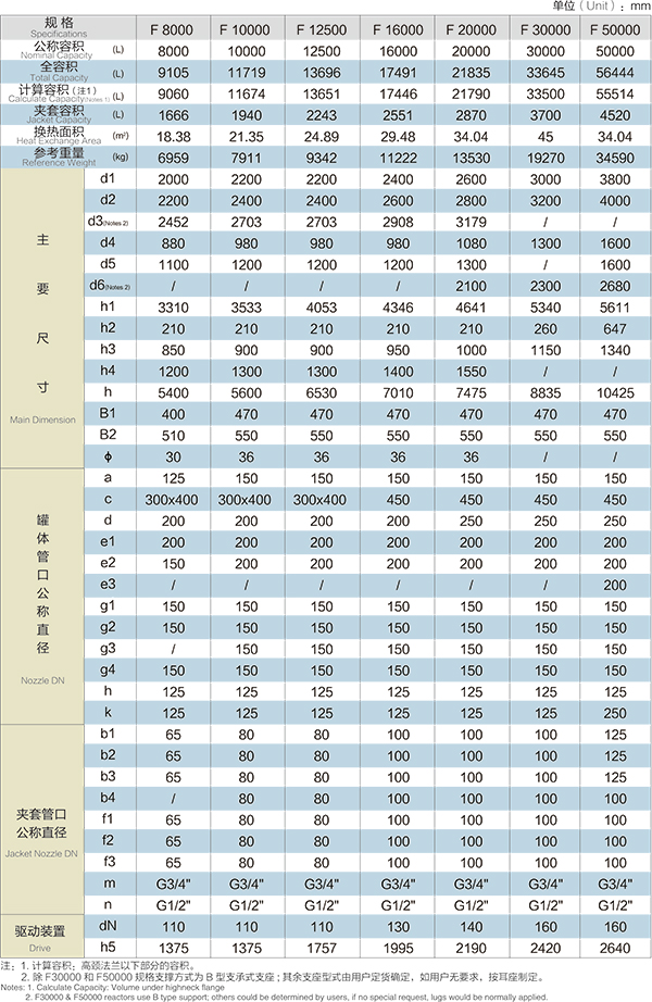F8000L-F50000L閉式搪玻璃反應(yīng)釜(閉式搪瓷反應(yīng)釜)設(shè)計(jì)圖紙及參數(shù)如下所示: