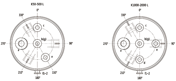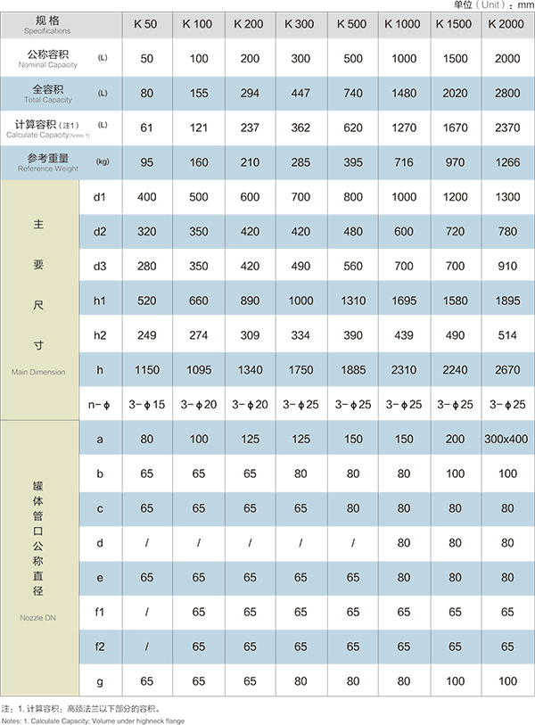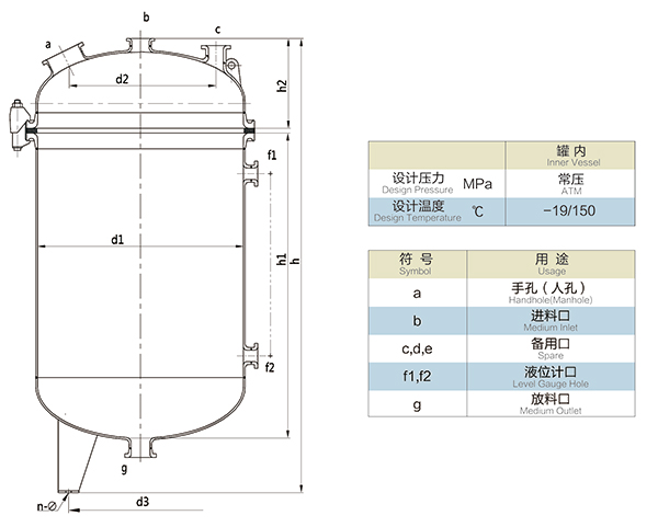 K50L-K200L開式搪玻璃貯罐(開式搪玻璃儲罐)設(shè)計圖紙及參數(shù)如下所示: