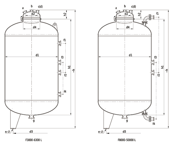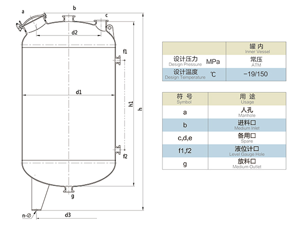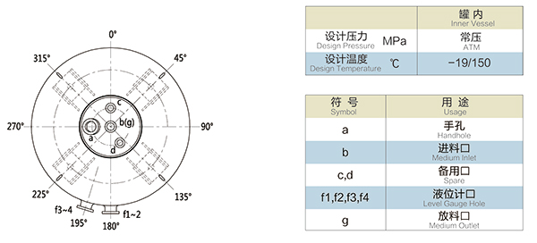 F3000L-F50000L閉式搪玻璃貯罐(閉式搪玻璃儲罐)設(shè)計(jì)圖紙及參數(shù)如下所示: