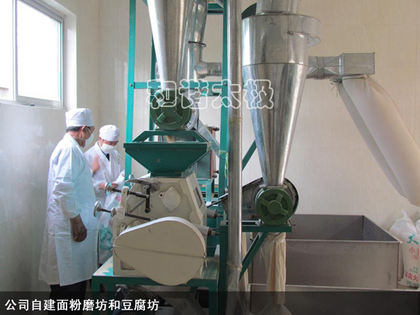 為了員工的飲食安全,配置了能容納800人同時(shí)就餐的食堂,飲用水配備了凈化自來水設(shè)施,還配置了面粉機(jī)房自己生產(chǎn)無害面粉,新上了豆腐生產(chǎn)裝置自己生產(chǎn)無害豆腐,還有15畝地的自產(chǎn)自用的綠色環(huán)保蔬菜園等。