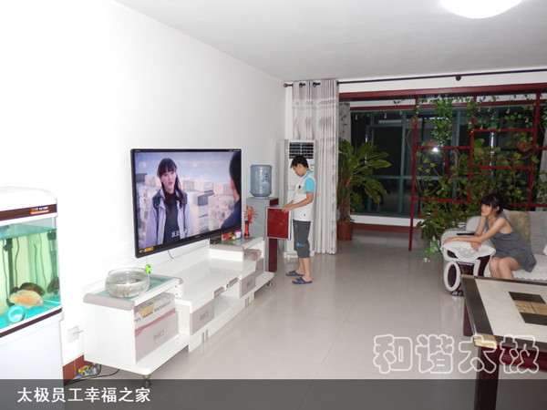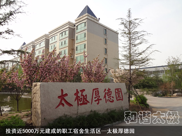 2008年,太極公司投資近8000萬元建成了職工公寓樓3座,戶外綠樹溪湖環(huán)繞,每戶面積170平米,統(tǒng)一配置60寸夏普電視等。所建成的職工單身公寓樓采用四星級標(biāo)準(zhǔn),共176間房,人均戶面積50平米,統(tǒng)一配置電視、網(wǎng)絡(luò)、洗浴間、床柜、空調(diào)、暖氣、桌椅等。而且單身公寓內(nèi)設(shè)有3000余平方米的生態(tài)園林和高檔游泳池,一年四季綠樹茂盛常春。