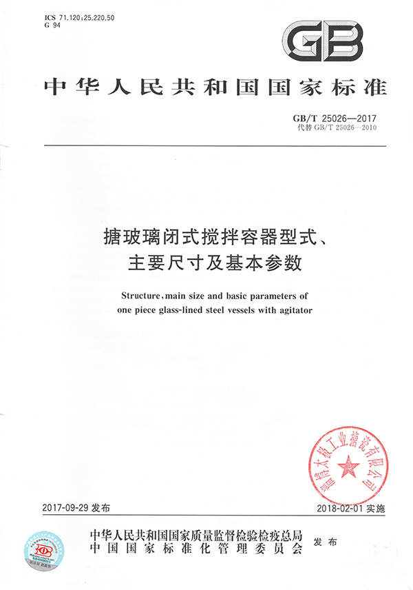 淄博太極以第一單位身份參與制定《搪玻璃閉式攪拌容器》、《搪玻璃開式攪拌容器》《搪玻璃設備技術條件》3個國家標準