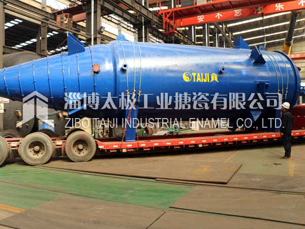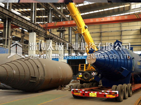 150533666012018年10月10日,兩臺(tái)目前國(guó)內(nèi)最長(zhǎng)的搪玻璃設(shè)備搪玻璃錐形反應(yīng)釜(60000L)在太極制造完畢,并順利圓滿裝車(chē)運(yùn)往用戶基地。根據(jù)技術(shù)部提供的參數(shù),該設(shè)備長(zhǎng)度為13.8米,是目前國(guó)內(nèi)最長(zhǎng)的搪玻璃設(shè)備